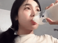 물 마시다 흘리는 누나